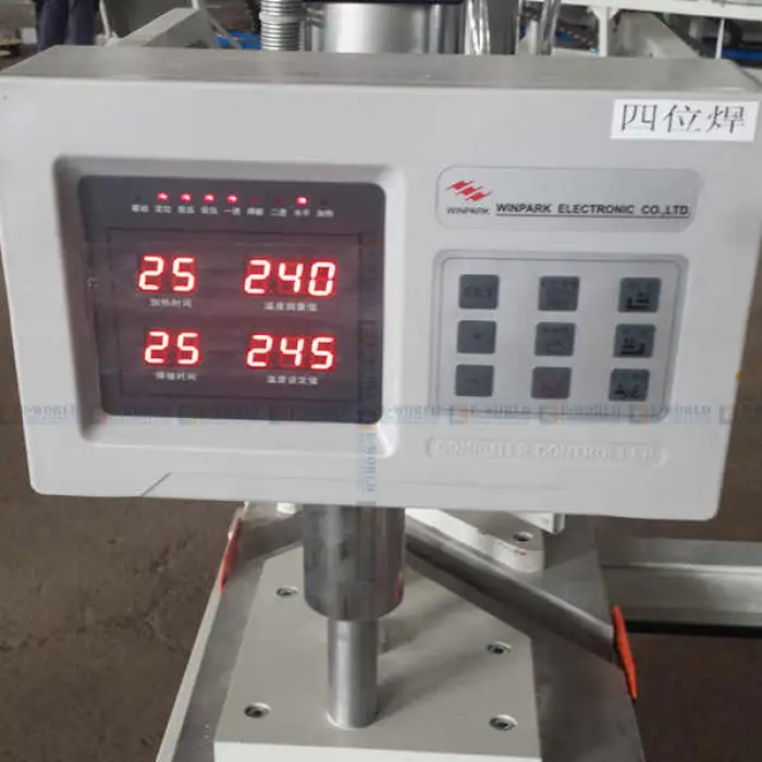 The machine is designed to weld PVC, UPVC, vinyl, and other plastic materials.