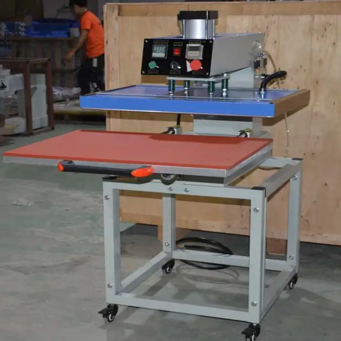 This is a semi-automatic heat press machine, which means it combines manual and automated features for ease of use.