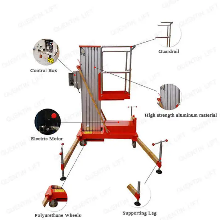 The Quentin Lift can reach a maximum platform height of 8 meters and a maximum work height of 10 meters.