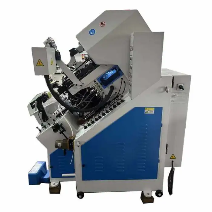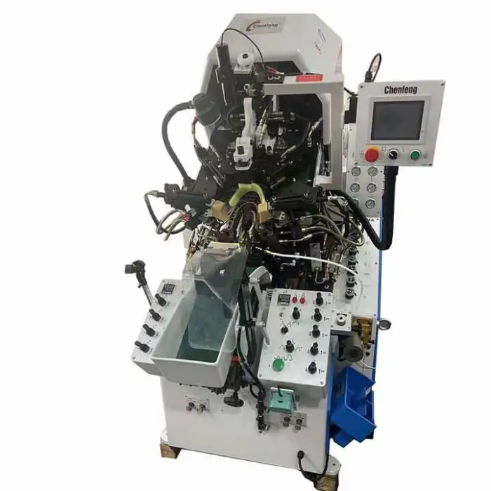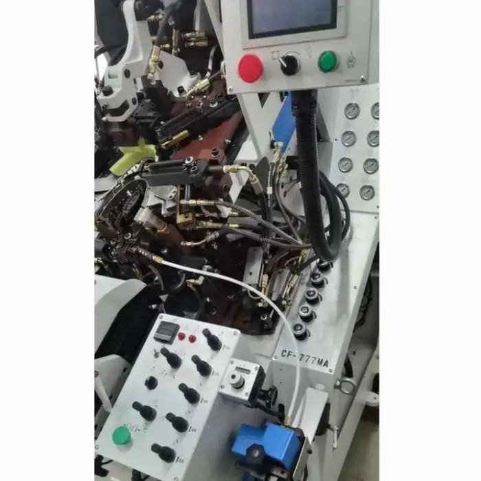 The CF-777MA is an automatic hydraulic shoe-making machine designed primarily for cementing and toe-lasting operations to speed up and standardize the finishing of shoe toes.