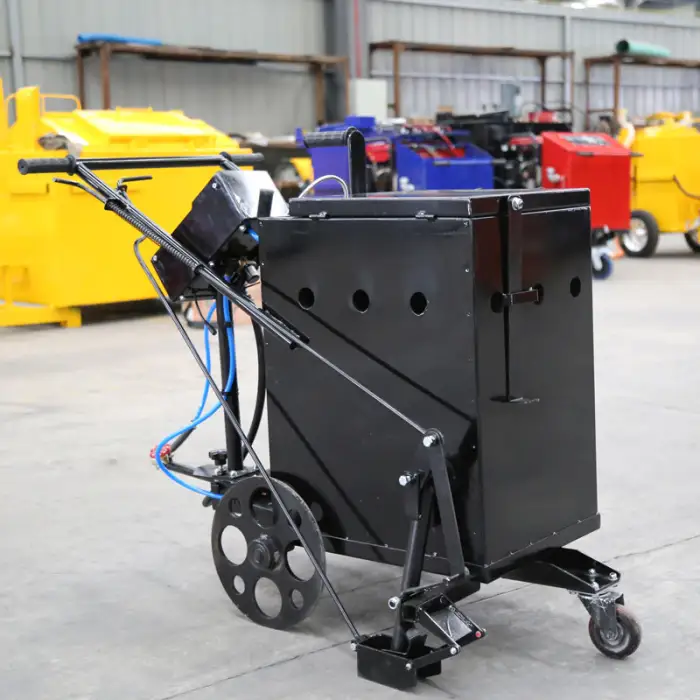 The trolley is hand-push operated for easy maneuvering. Position it near the work area, connect LPG per instructions, heat the material to working viscosity, and apply the sealant using the supplied nozzle/dispensing system. Follow all safety and operating procedures in the manual.