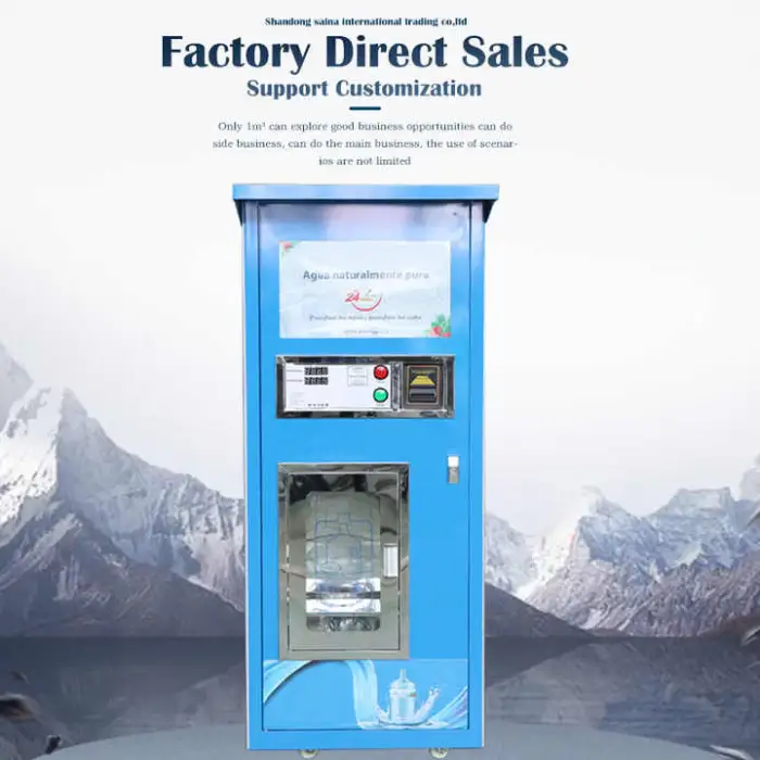 This vending machine uses advanced reverse osmosis technology for clean and safe drinking water.
