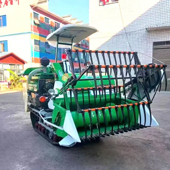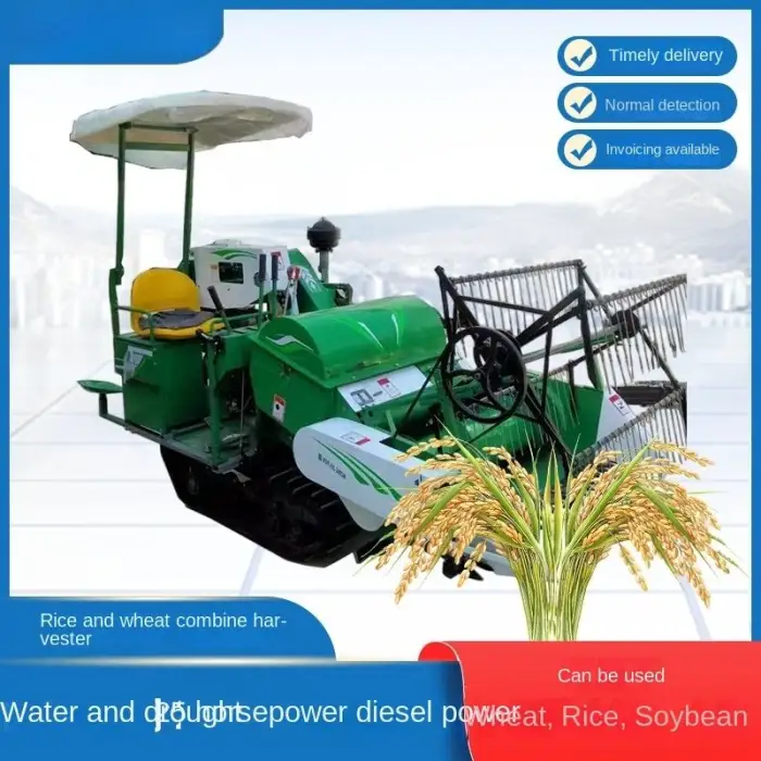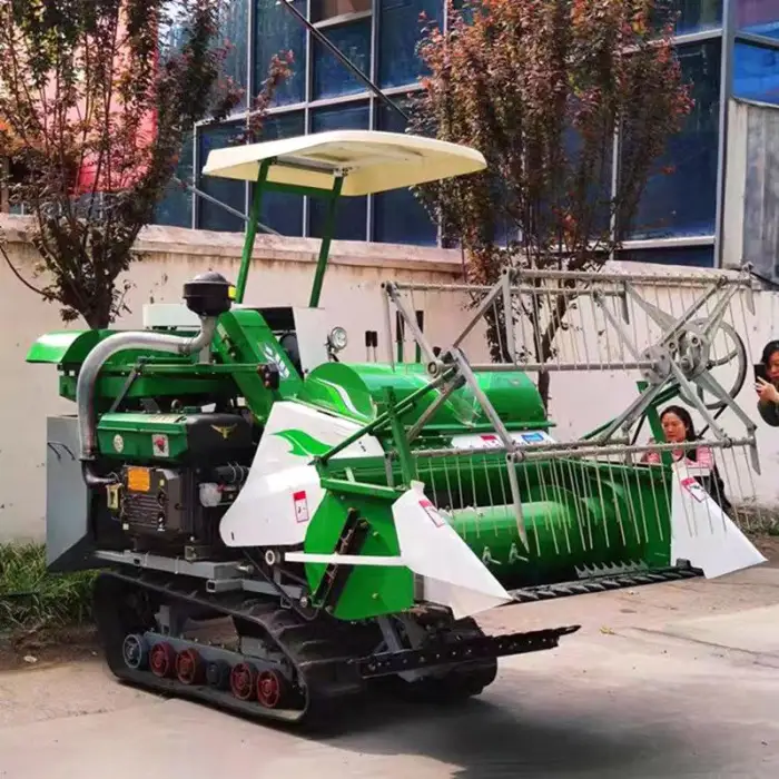 It can harvest rice, wheat, soybean, corn, potatoes, garlic, carrots, tea leaves, cotton, and peanuts.