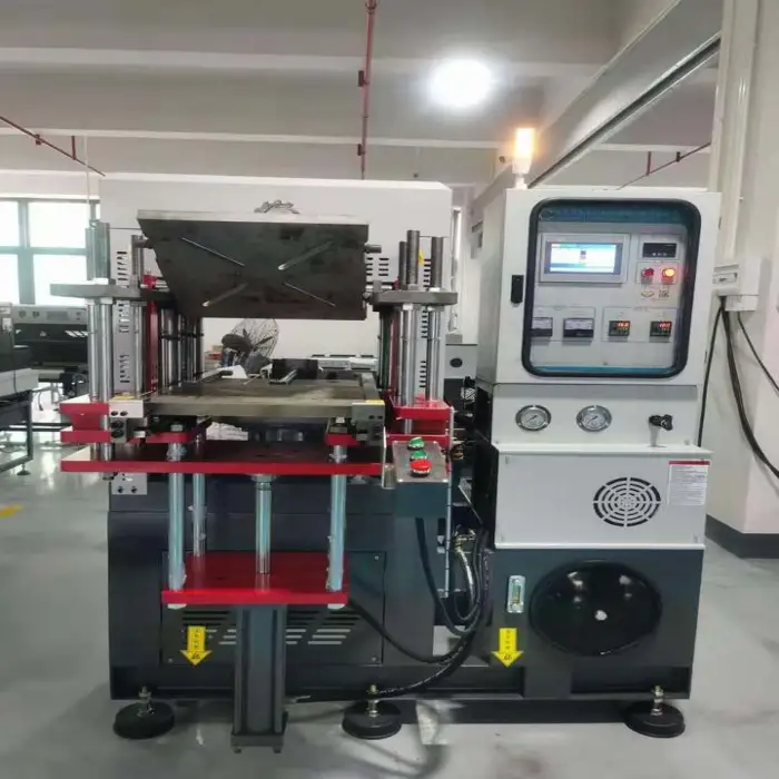 The machine utilizes a powerful heating system that is vital for efficient vulcanization of silicone materials.
