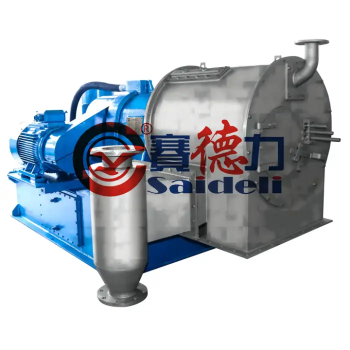The machine uses a horizontal spiral centrifuge for efficient liquid-solid separation.