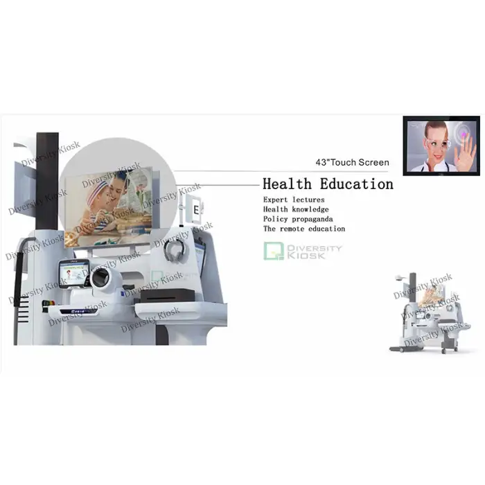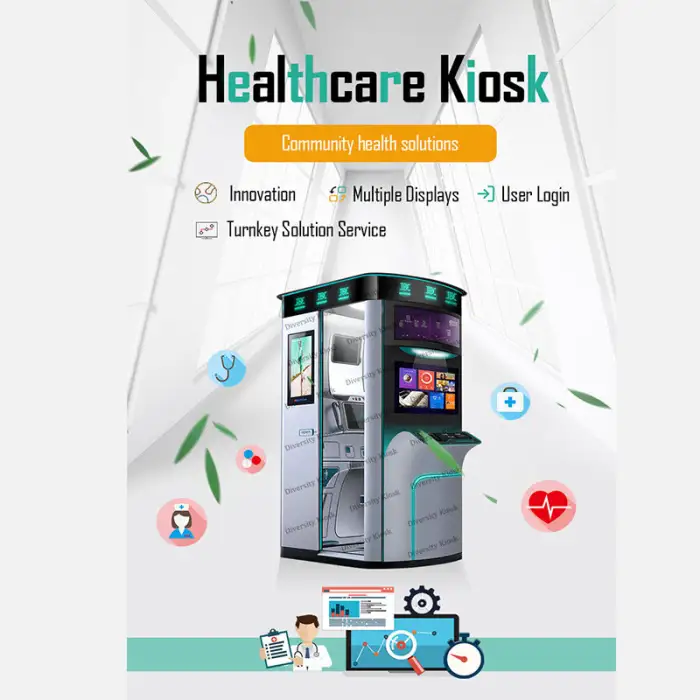 The kiosk can be used in hospitals, clinics, health fairs, community events, pharmacies, corporate wellness programs, and outdoor venues.