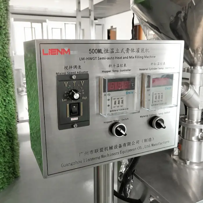The machine features reliable temperature control that maintains consistent temperatures during the filling process, which is crucial for paste products.
