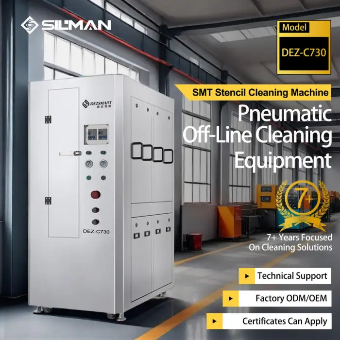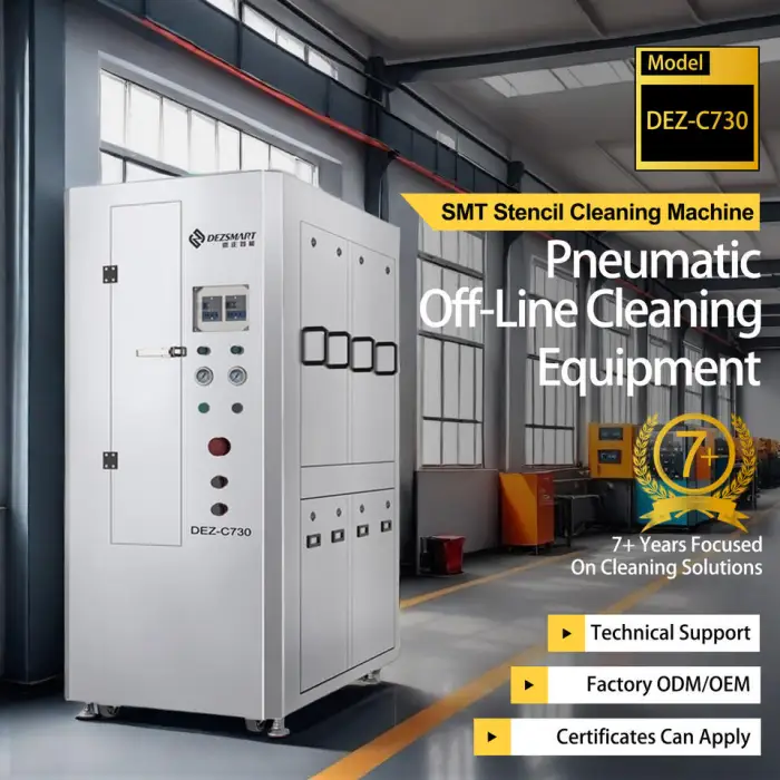 It is recommended to use cleaning solutions that are compatible with SMT stencils and safe for pneumatic machinery.