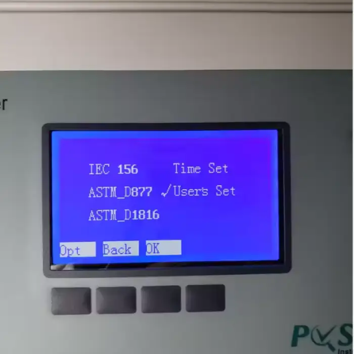 The PS-1001 complies with ASTM D1816, ASTM D877, and IEC60156 standards for reliable and accurate testing.