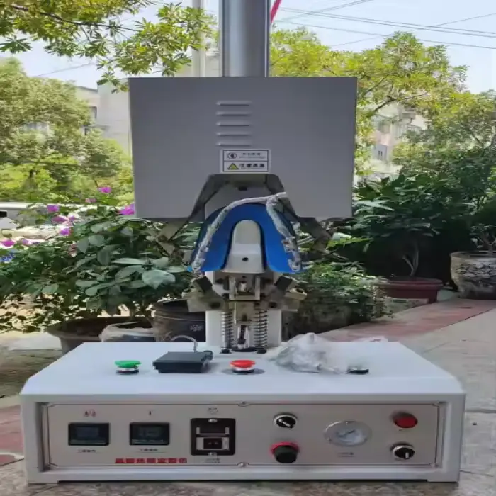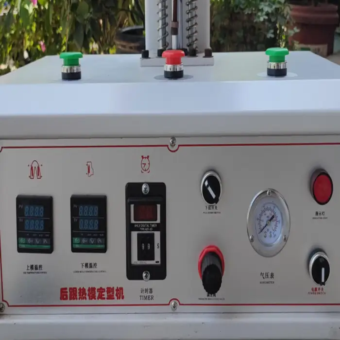 The machine shapes the toe, heel and back parts of shoes. It's intended for forming and finishing heel and back sections in small-to-medium shoe production, custom shoemaking and repair work.
