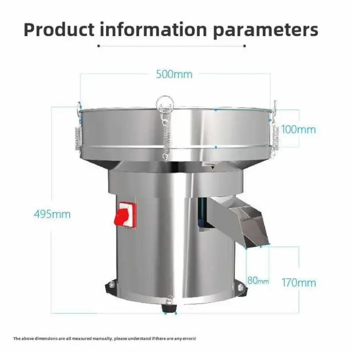 The dimensions of the Small Stainless Steel Separation Equipment are 500mm x 500mm x 495mm.