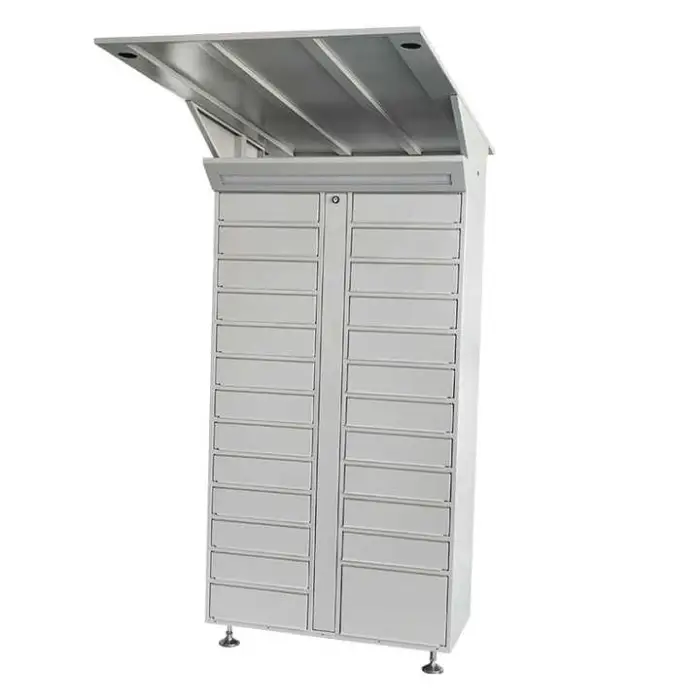 The unit is designed to hold parcels of various small-to-medium sizes across its 14 compartments. For very large or irregular items, a larger locker module or dedicated compartment may be required.