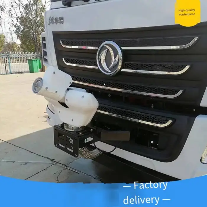 The water cannon produces a high-pressure spray for effective cleaning.