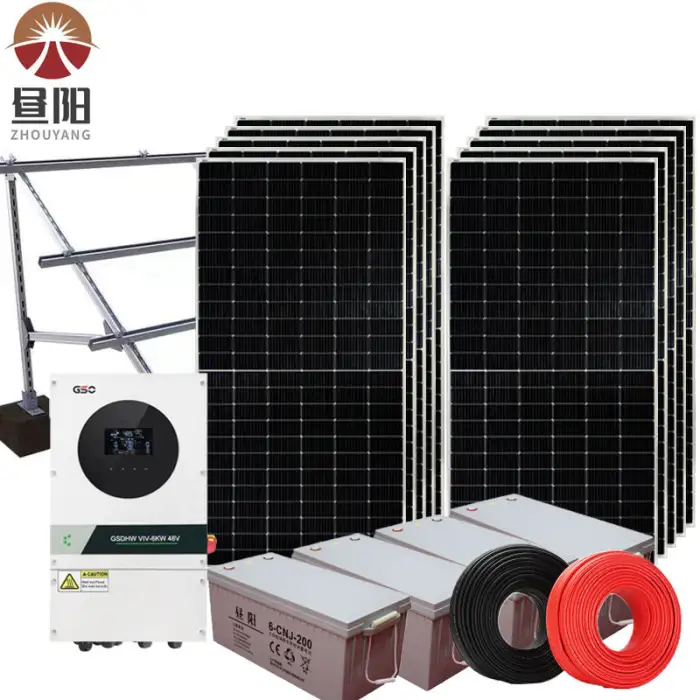 The system includes a 5kW off-grid inverter, which provides pure sine wave voltage for efficient power conversion.