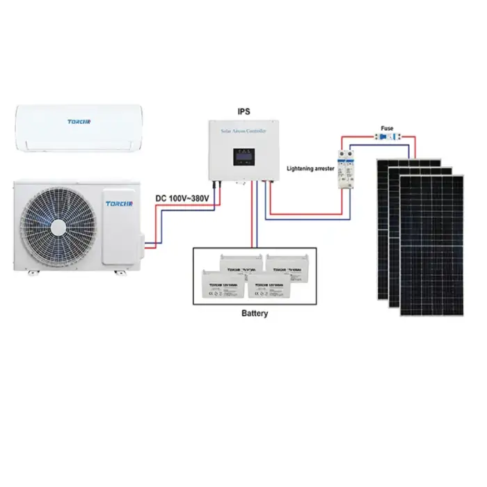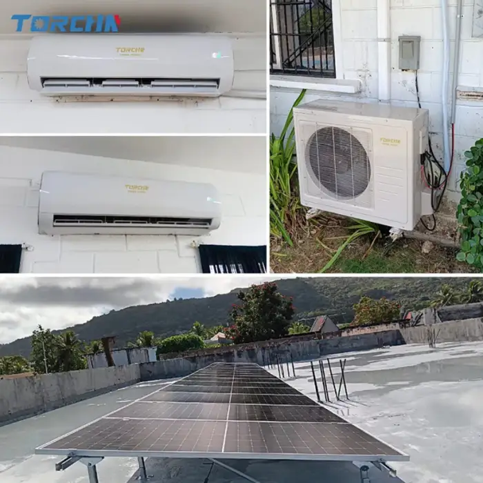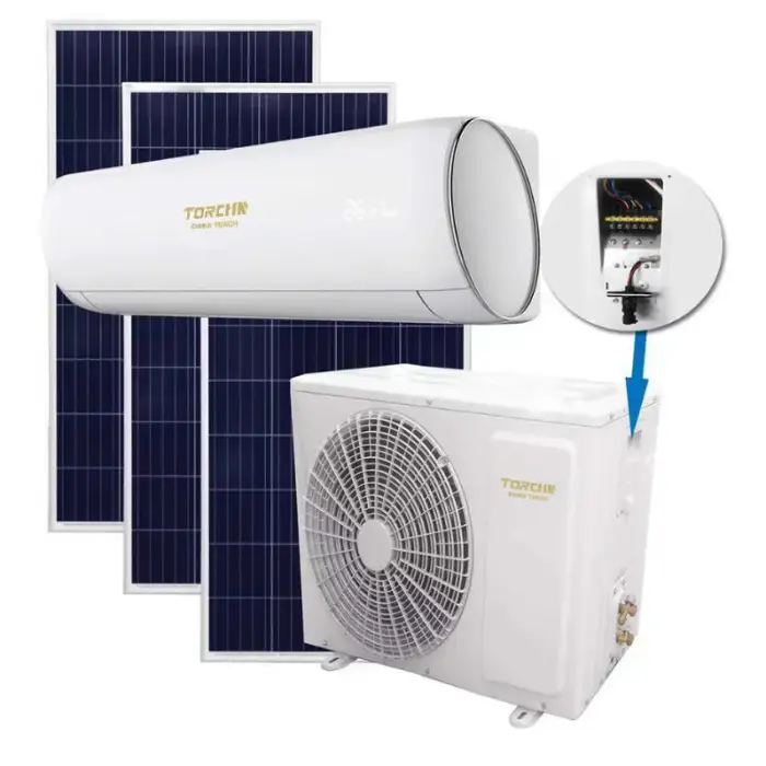 The primary power source for the Solar Powered DEYE Air Conditioner is solar energy, allowing it to run off-grid and reducing reliance on traditional electricity.