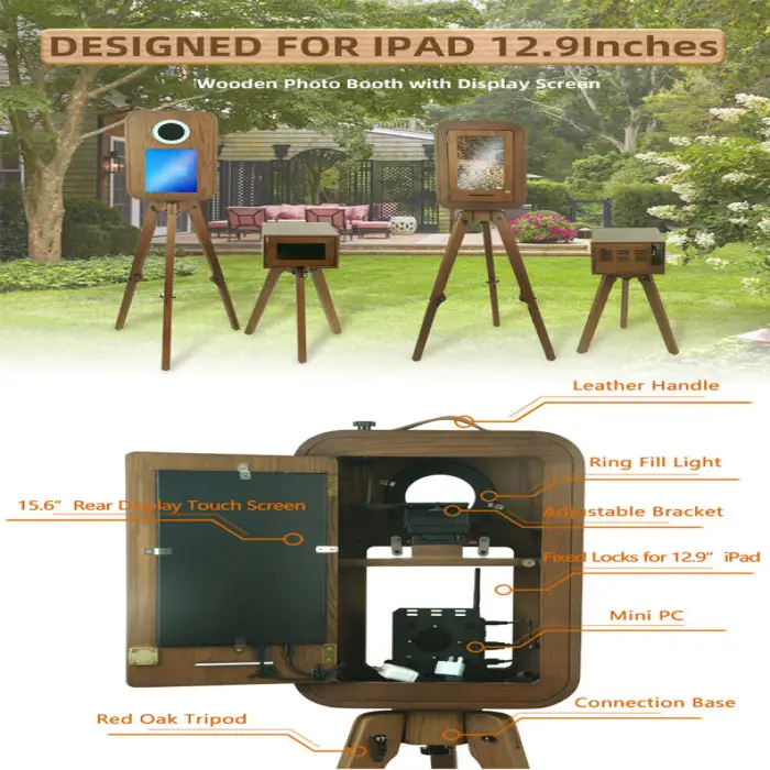 The Solid Wooden Photo Booth is designed for the 12.9" iPad.