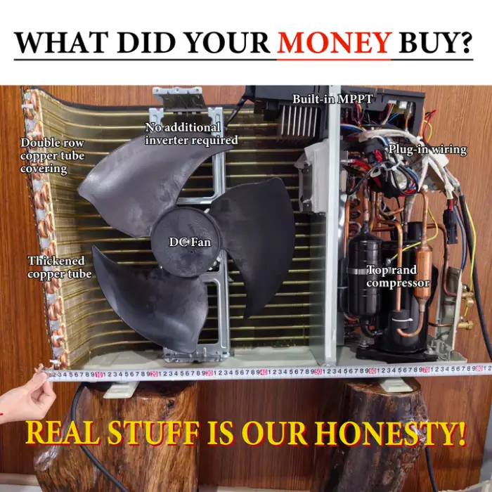 The air conditioner can be powered by solar energy, which helps reduce electricity costs and is environmentally friendly. It can work with solar panels to efficiently operate.