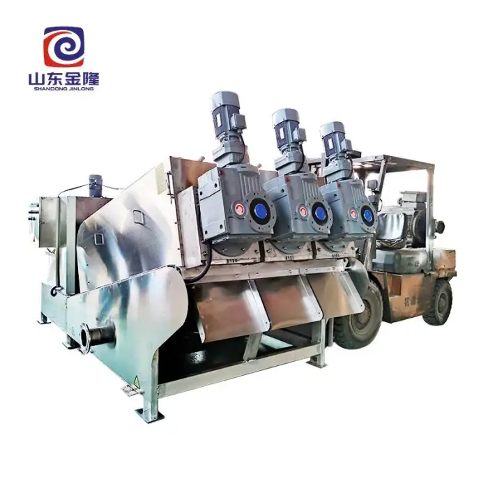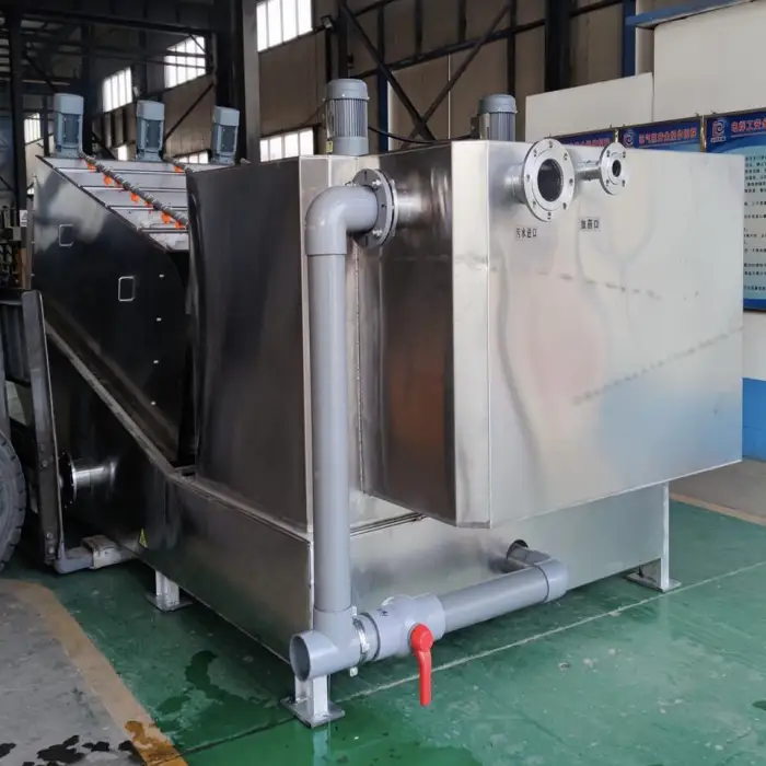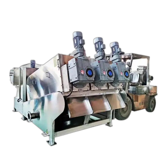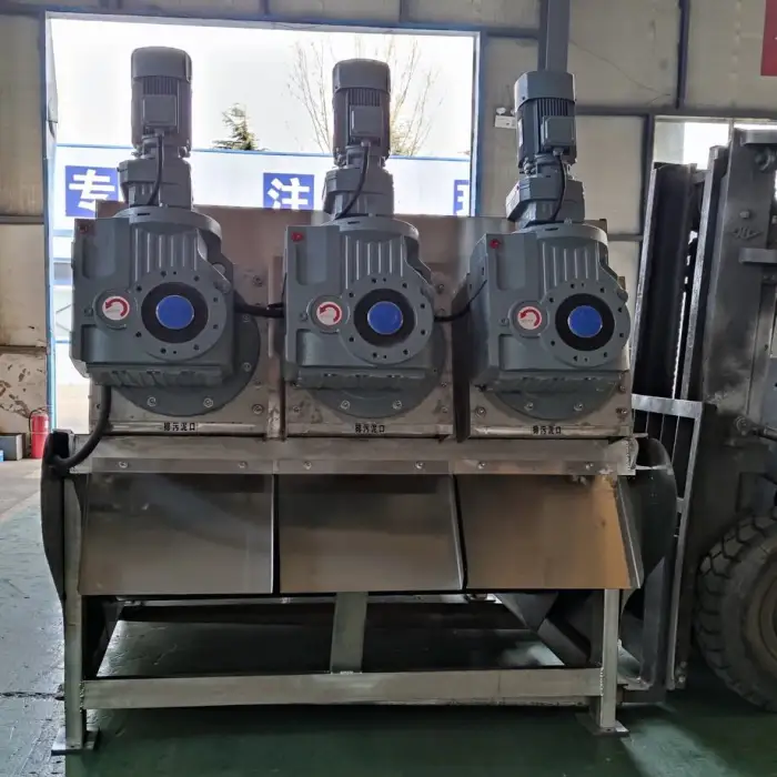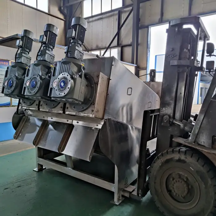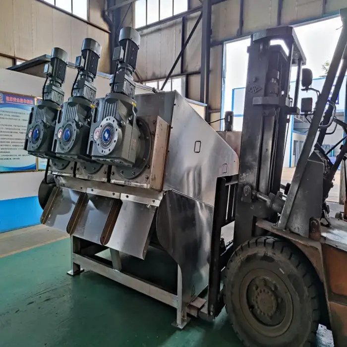 A mechanical dewatering unit that uses stacked spiral/screw elements to remove water from sludge, reducing waste volume and improving downstream handling. It is designed for continuous operation in wastewater, sludge processing and other industrial applications.