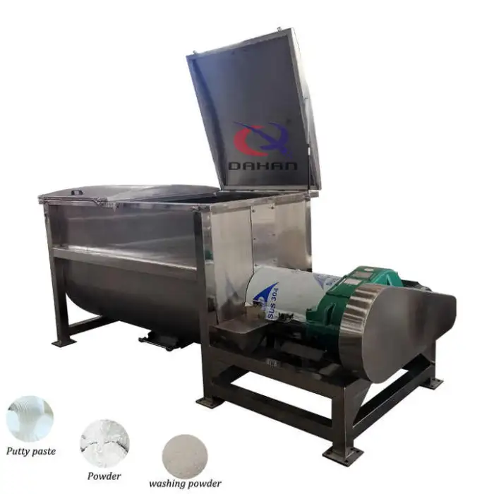 The Stainless Steel Ribbon Mixer can process a variety of materials including sticky putty, paint, dry cement powder, plastics, chemicals, and food.