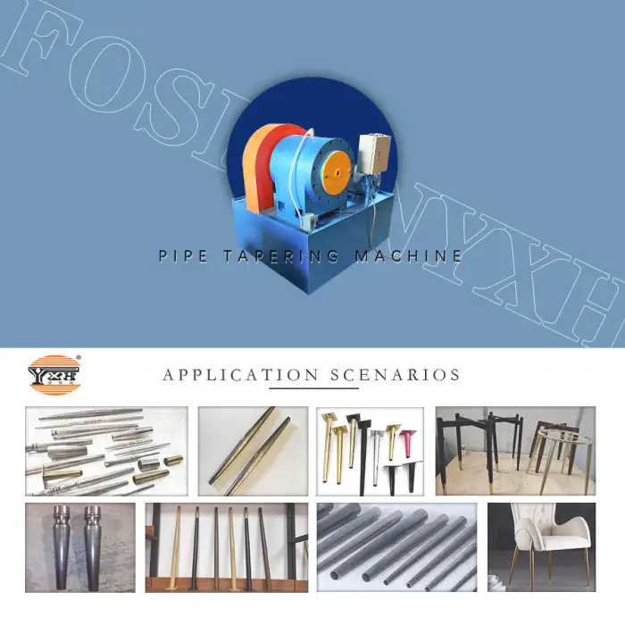 The primary use of the Steel Pipe Tube Cone Tapering Machine is to create tapered ends on metal pipes, making it ideal for manufacturing furniture legs such as those for sofa tables and chairs.