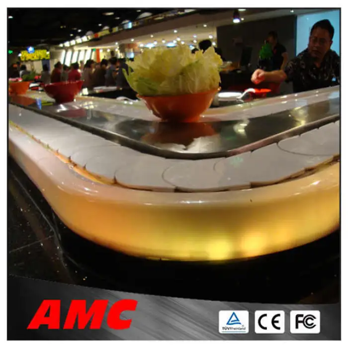 This conveyor belt is ideal for sushi restaurants, food shops, food and beverage shops, manufacturing plants, and catering events.