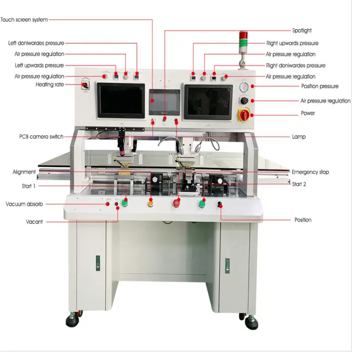 The machine is equipped with three CCD cameras for precise alignment during the bonding process.