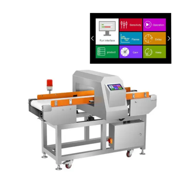 The Touch Screen Metal Detector features a rapid 1400mm conveyor belt for efficient screening of items, significantly enhancing workflow in high-traffic areas.