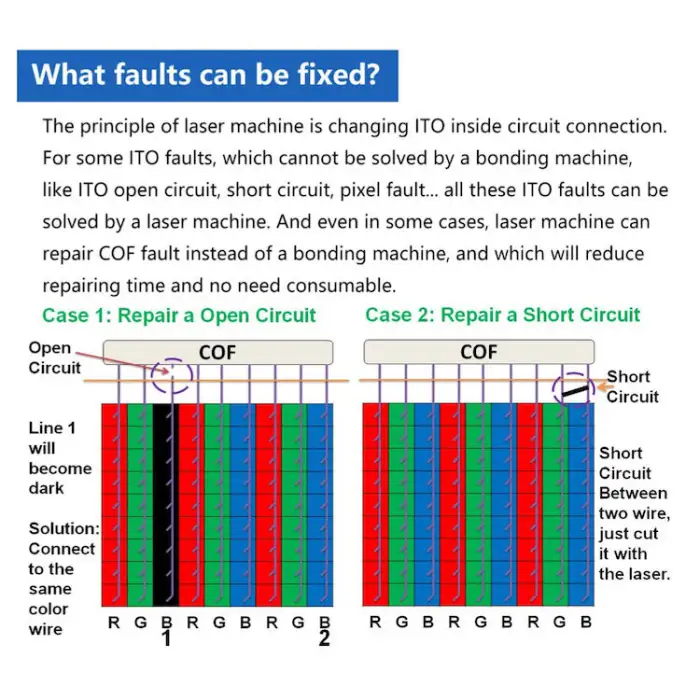 The machine uses high precision laser technology to perform efficient and accurate repairs on LCD panels.