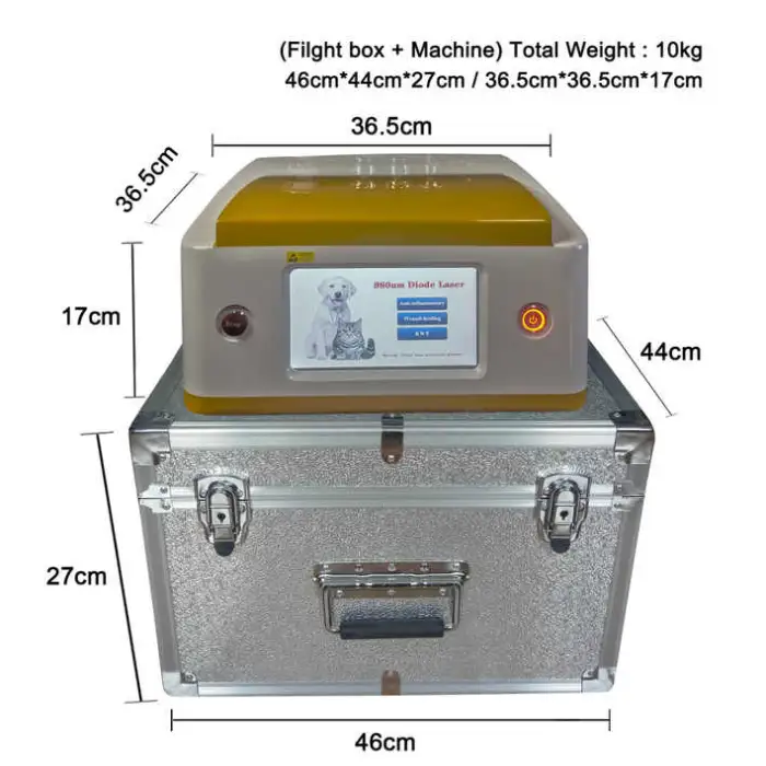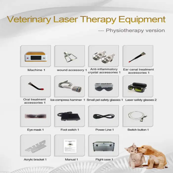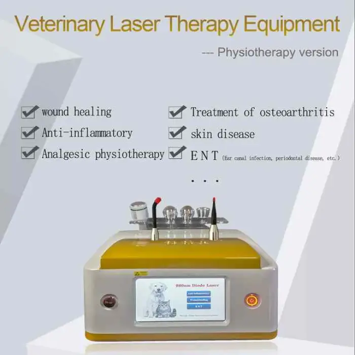 The Veterinary Physical Therapy 980Nm Diode Laser is used for treating various conditions in pets, including wounds, osteoarthritis, skin diseases, and aiding in recovery after surgery.