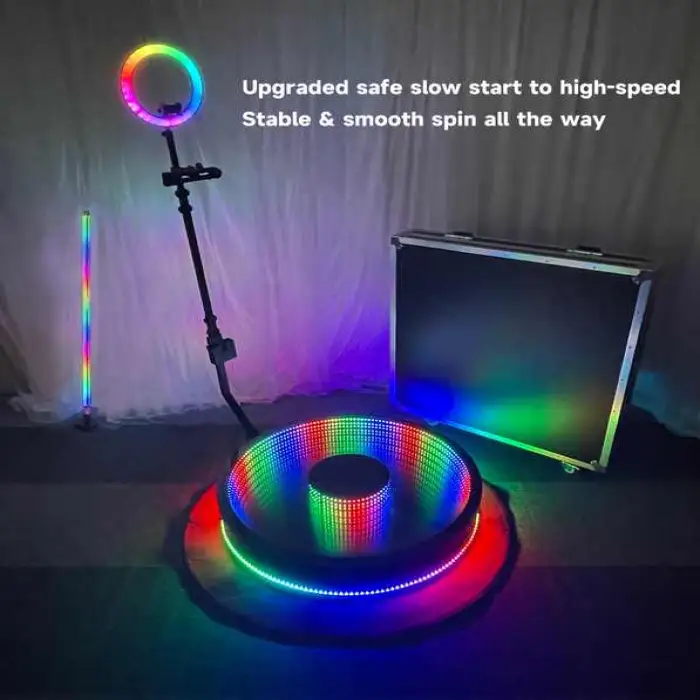 The 360 Photo Booth is perfect for parties, weddings, festivals, birthday celebrations, and can be used both indoors and outdoors.