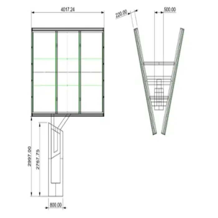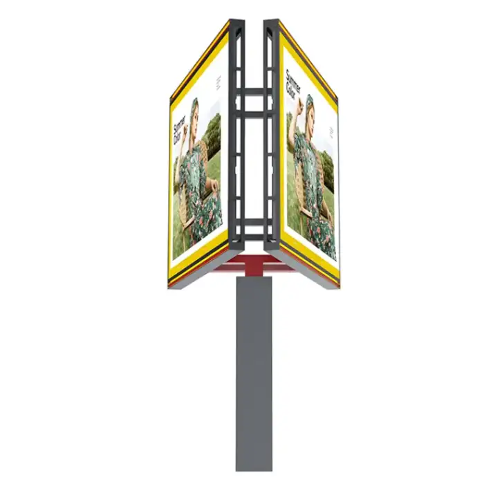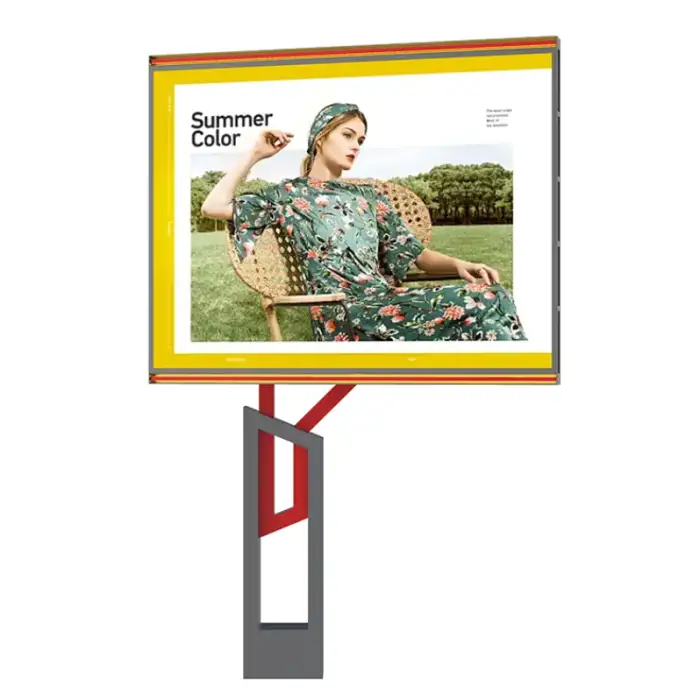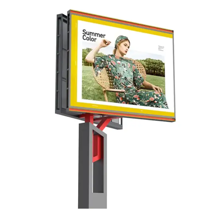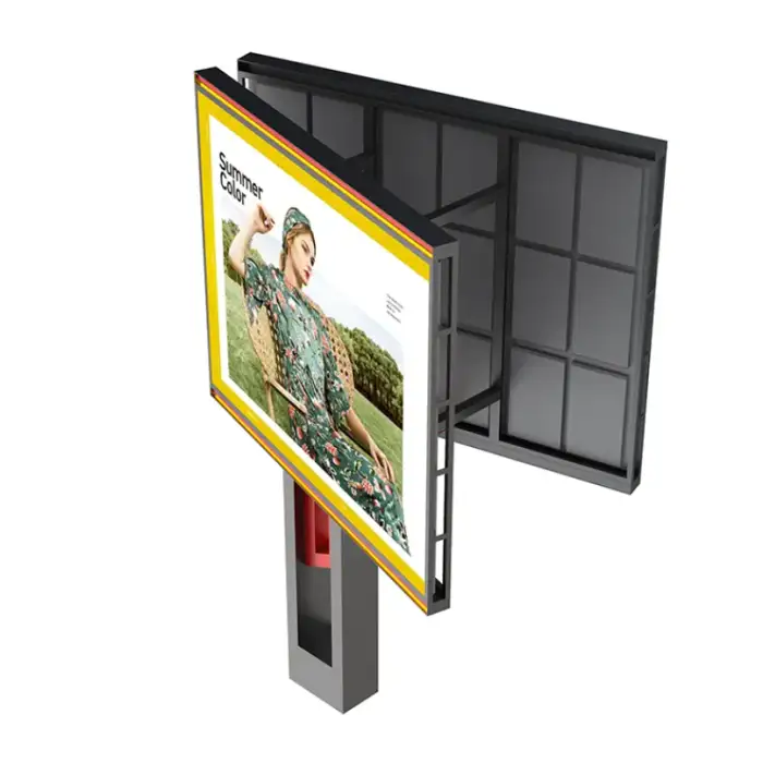 The billboard features a steel frame for structural integrity and is coated with galvanized plate material for weather resistance.