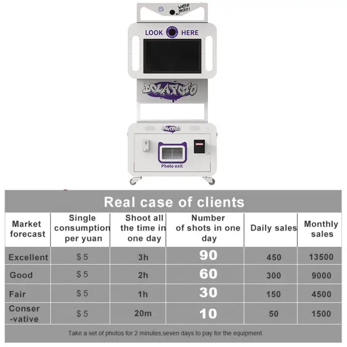 The product description does not specify accessories, but it typically includes the main photo booth unit and necessary power cables.