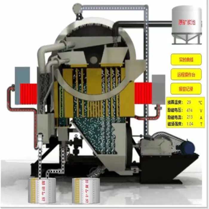 The separator operates with a high magnetic field intensity of ≥13000 GS.