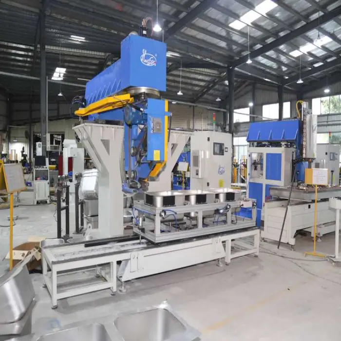 It can be used in production lines for manufacturing stainless steel sink tanks and welding components for various metal fabrication tasks.