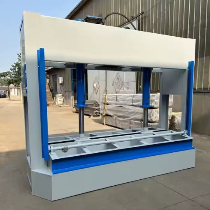 The Wood Based Panel Machine utilizes a hydraulic drive system.