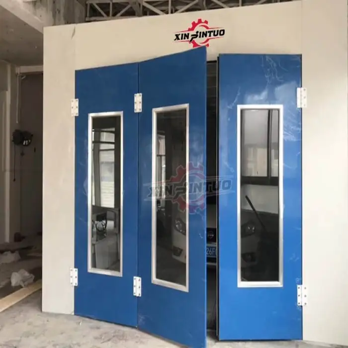 The Xinjintuo Spray Bake Paint Booth operates on a 380v/3phase/50hz power supply.