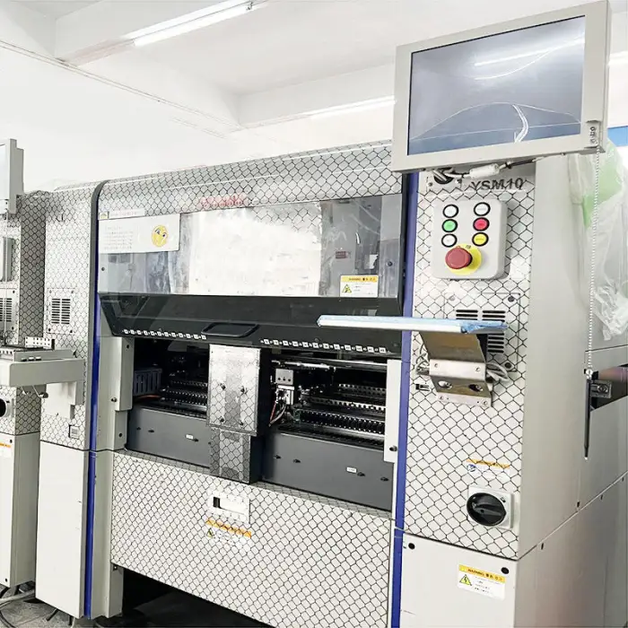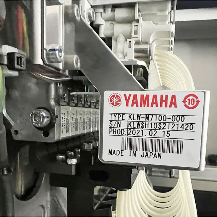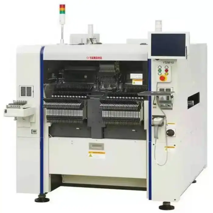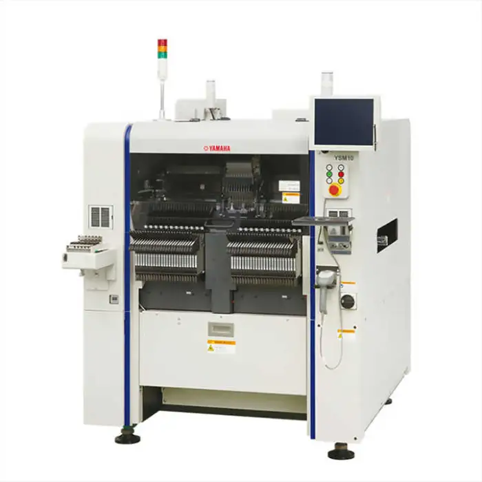 The Yamaha YSM10 20 30 is a pick and place machine designed for assembling printed circuit boards (PCBs) in electronics production.