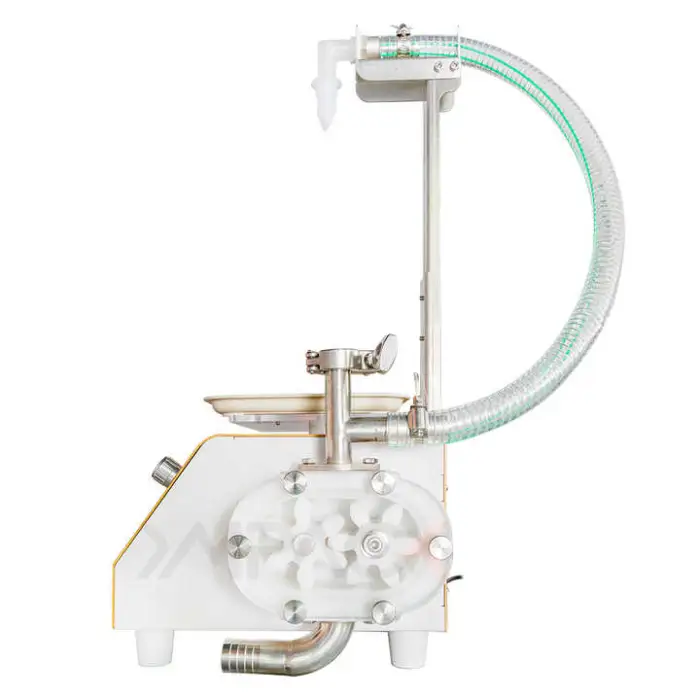 The YIMUPACK Manual Automatic Bottle Filler is designed to handle viscous liquids such as honey, sauces, jams, and oils.