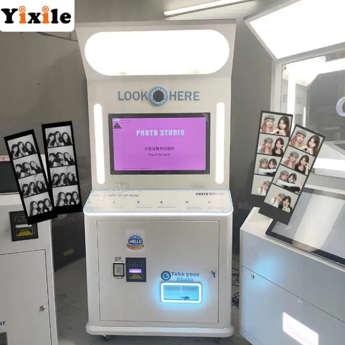 You will need sticker photo paper (rolls or sheets) and the appropriate printer consumables (ink/ribbons) depending on the installed printer type. Regular cleaning of the screen, camera lens and printer path is recommended. The supplier can advise on part numbers and maintenance intervals.