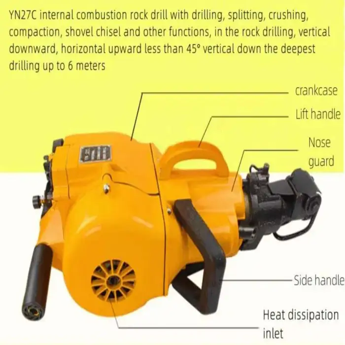 The YN27C rock drill machine has a maximum drilling depth of 6 meters.