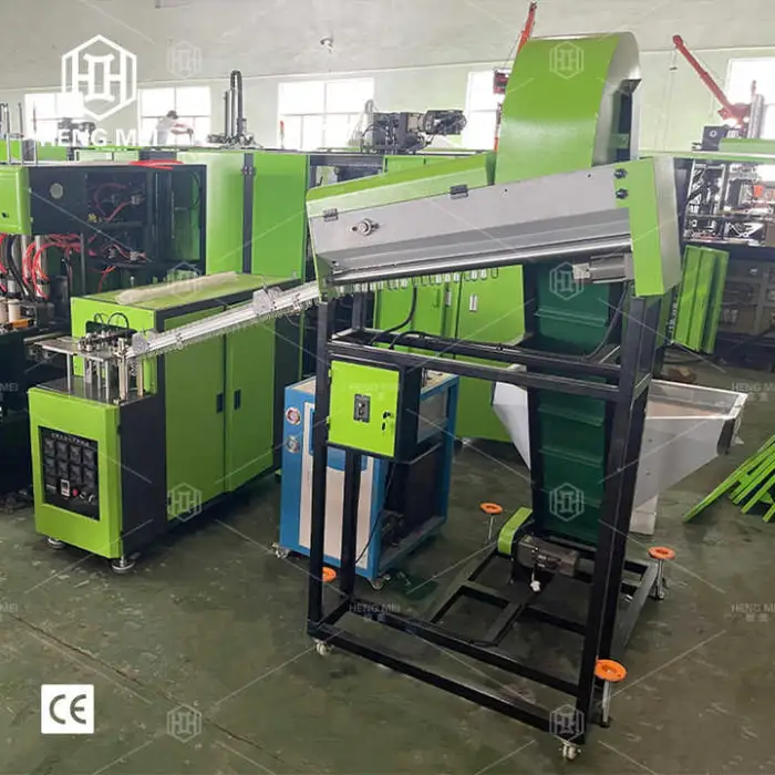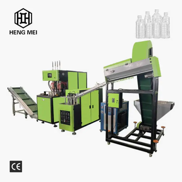 The machine can process PET, PC, and PP plastics, making it versatile for various bottle production.