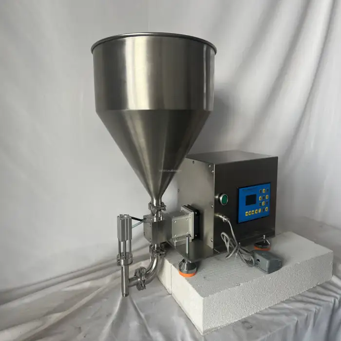 This machine can fill peanut butter, cheese sauce, yogurt, cosmetic creams, and other viscous liquids.