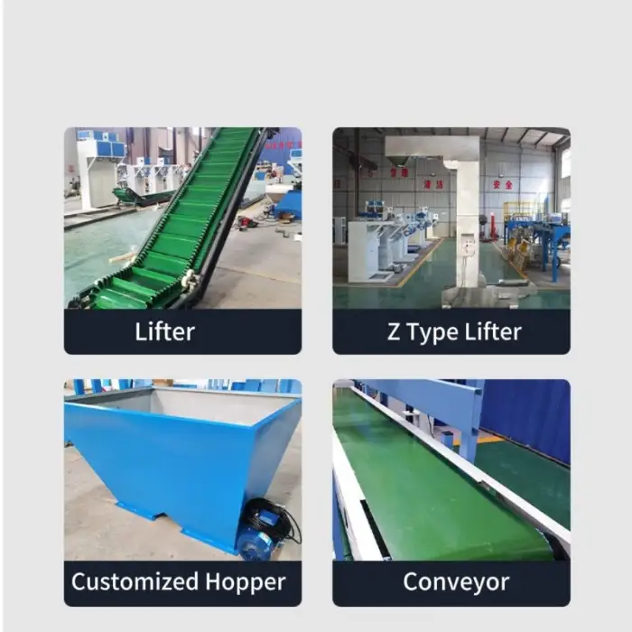 The machine is designed to pack products in sizes of 25KG, 50KG, and 100KG.