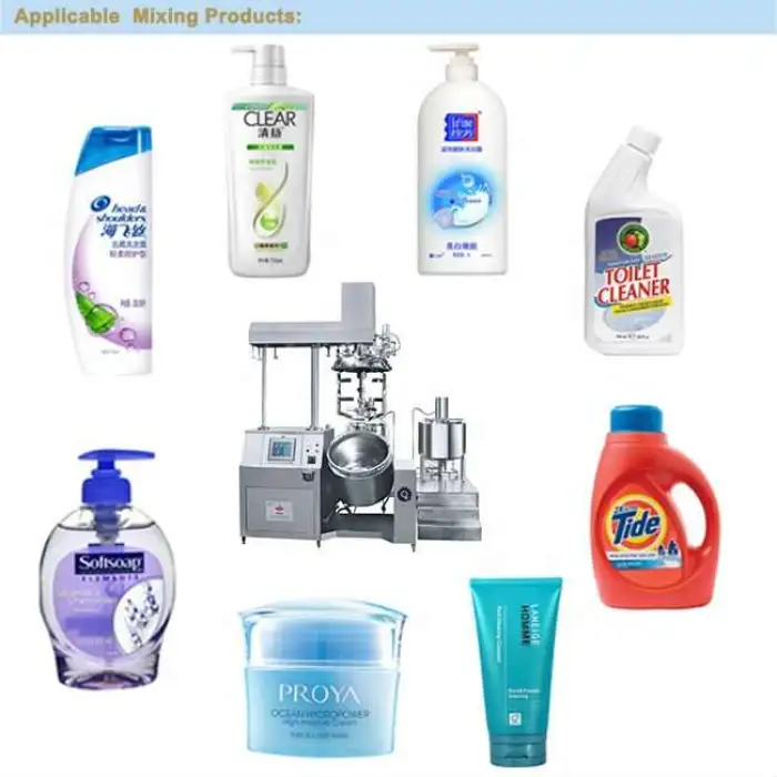 This machine is designed for mixing various cosmetic products, including creams, lotions, pastes, body butters, emulsions, and serums.