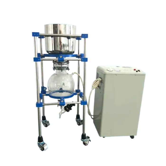 The filtrate is collected in a 10L glass flask that comes with a discharge valve for easy handling and disposal.
