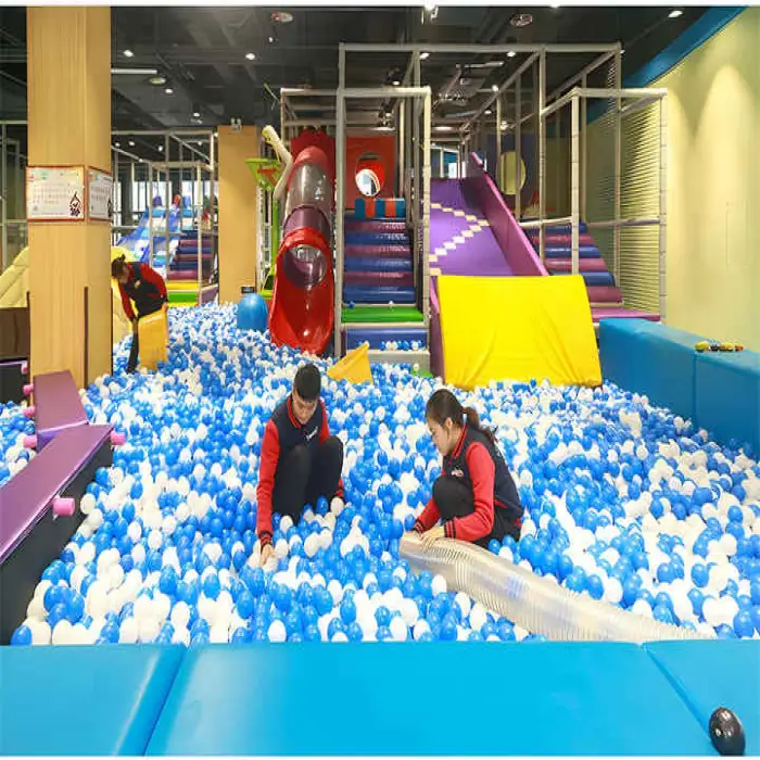 The machine supports common play (ocean) ball sizes. For precise compatibility (e.g., 55 mm, 65 mm, 75 mm balls), provide your ball dimensions to the supplier so they can confirm fit or recommend model settings.
