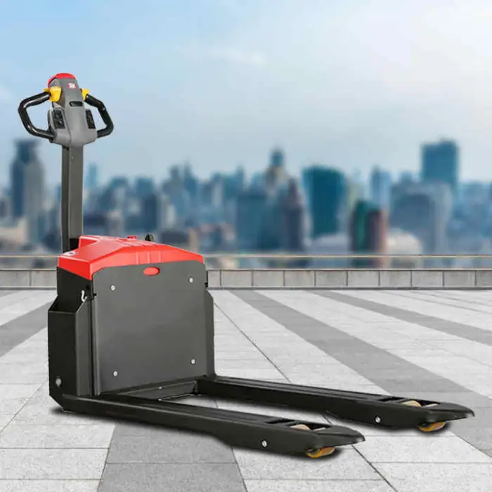 This pallet stacker uses a 48V lithium battery as its power source.