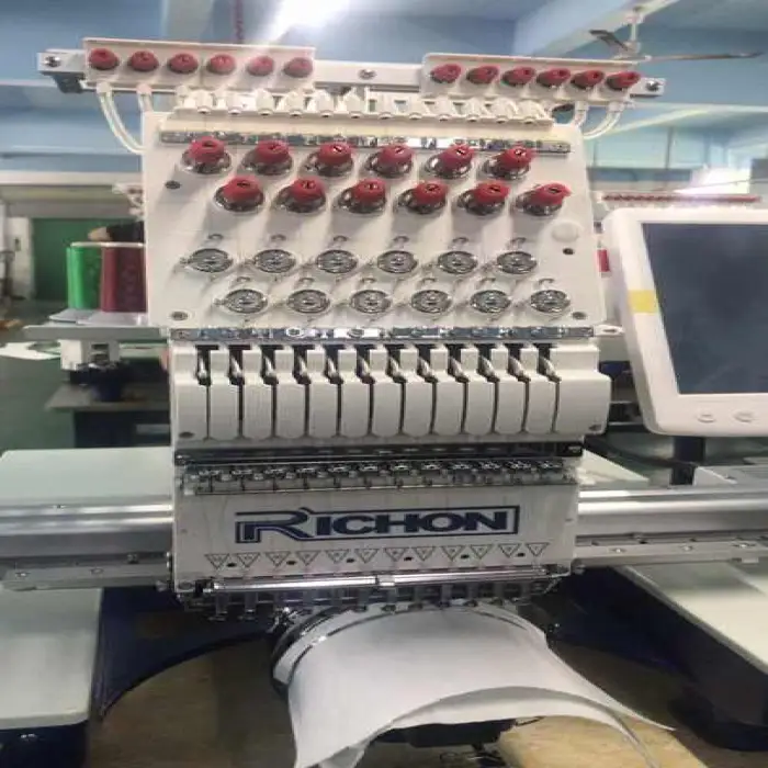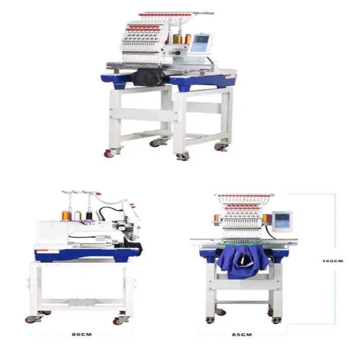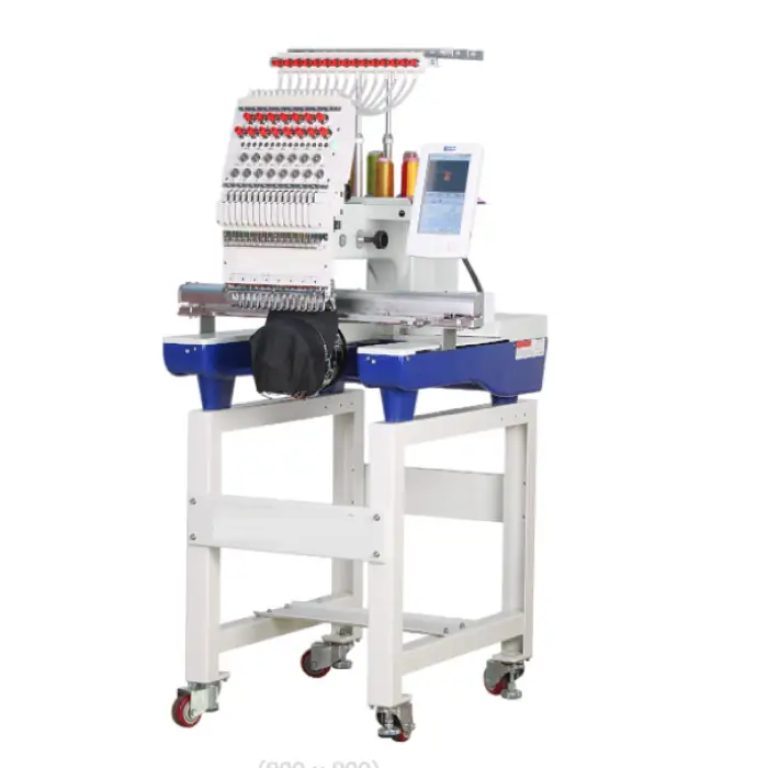 This embroidery machine features 12 needles, which allows for fast and efficient embroidery.