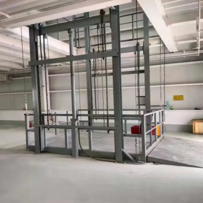 The maximum load capacity of the hydraulic cargo elevator is 1500kg.