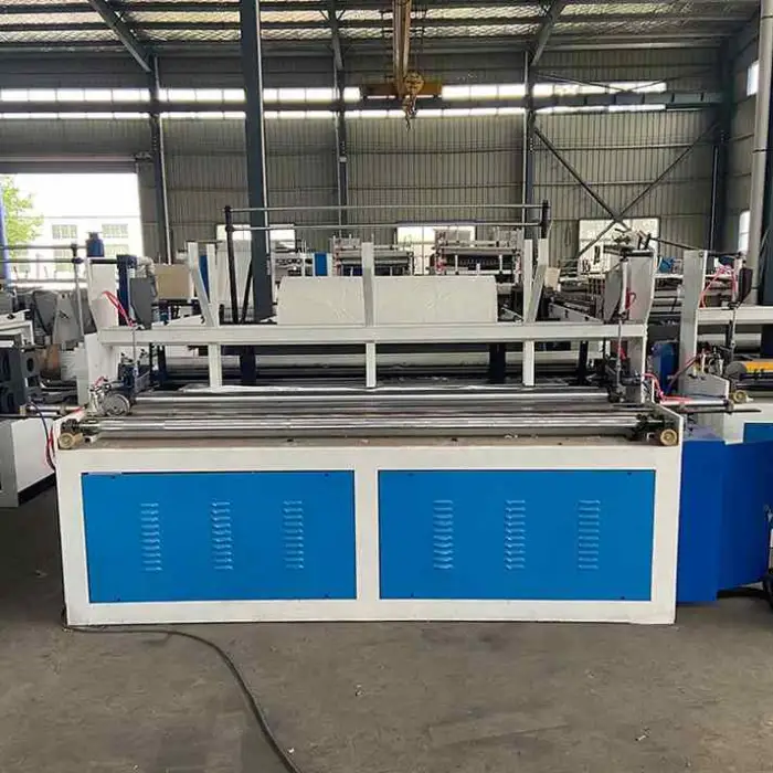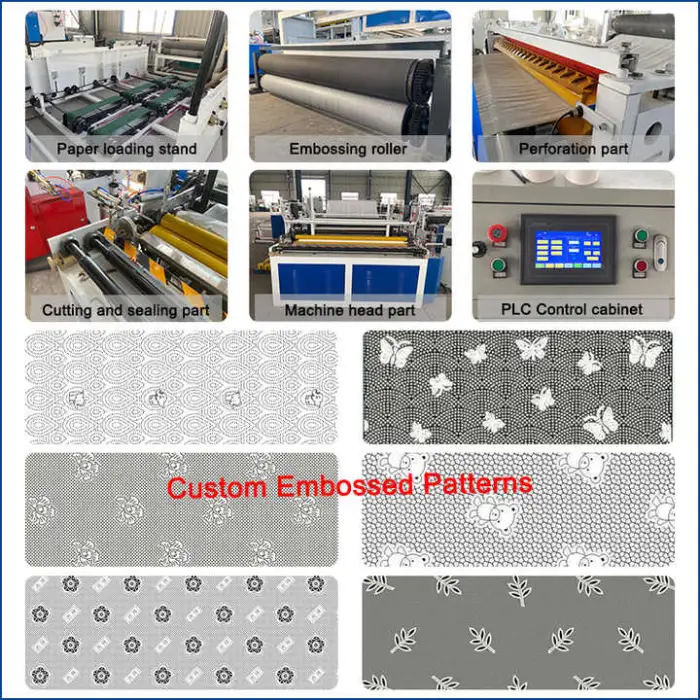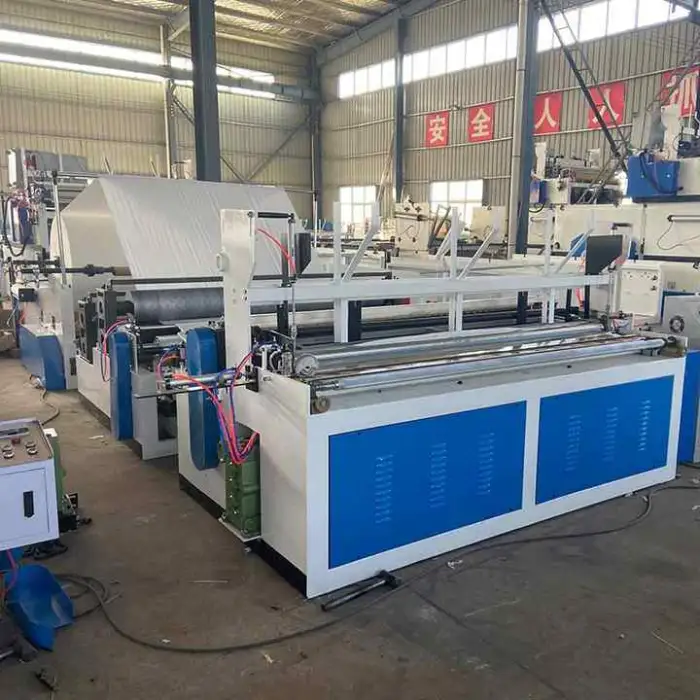 The machine is specifically designed to process paper for producing toilet tissue rolls.